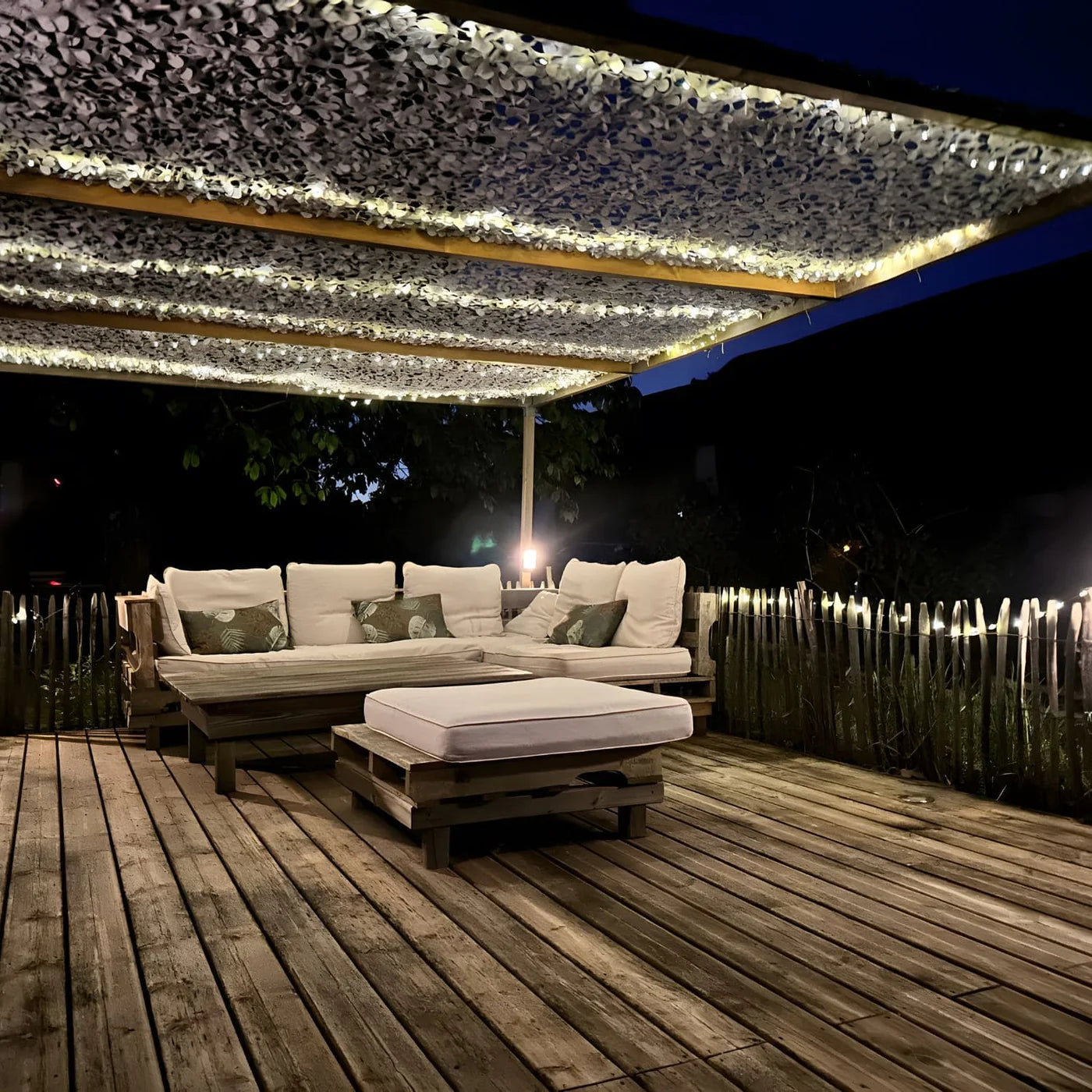 - Städtische Umgebung: Wenn Sie eine Terrasse oder einen Garten in einer städtischen Umgebung beschatten möchten, ist ein weißes oder schwarzes Tarnnetz am besten geeignet. Diese Farben werden mit den Farben der umliegenden Gebäude und städtischen Strukturen harmonieren.